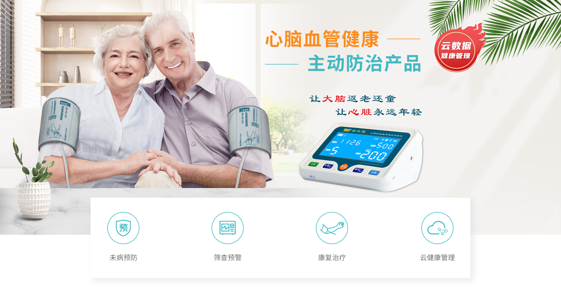 訓練者在每天通過腦心健做與適應訓練治療過程中,腦心健設備自動多次采集訓練者的各肢體血壓值, 心電,心率,血氧,血糖等生理參數(shù),并通過網絡上傳到云服務平臺,通過分析計算后,對健康風險特 征的訓練者發(fā)出健康提示,發(fā)現(xiàn)心腦血管健康問題。